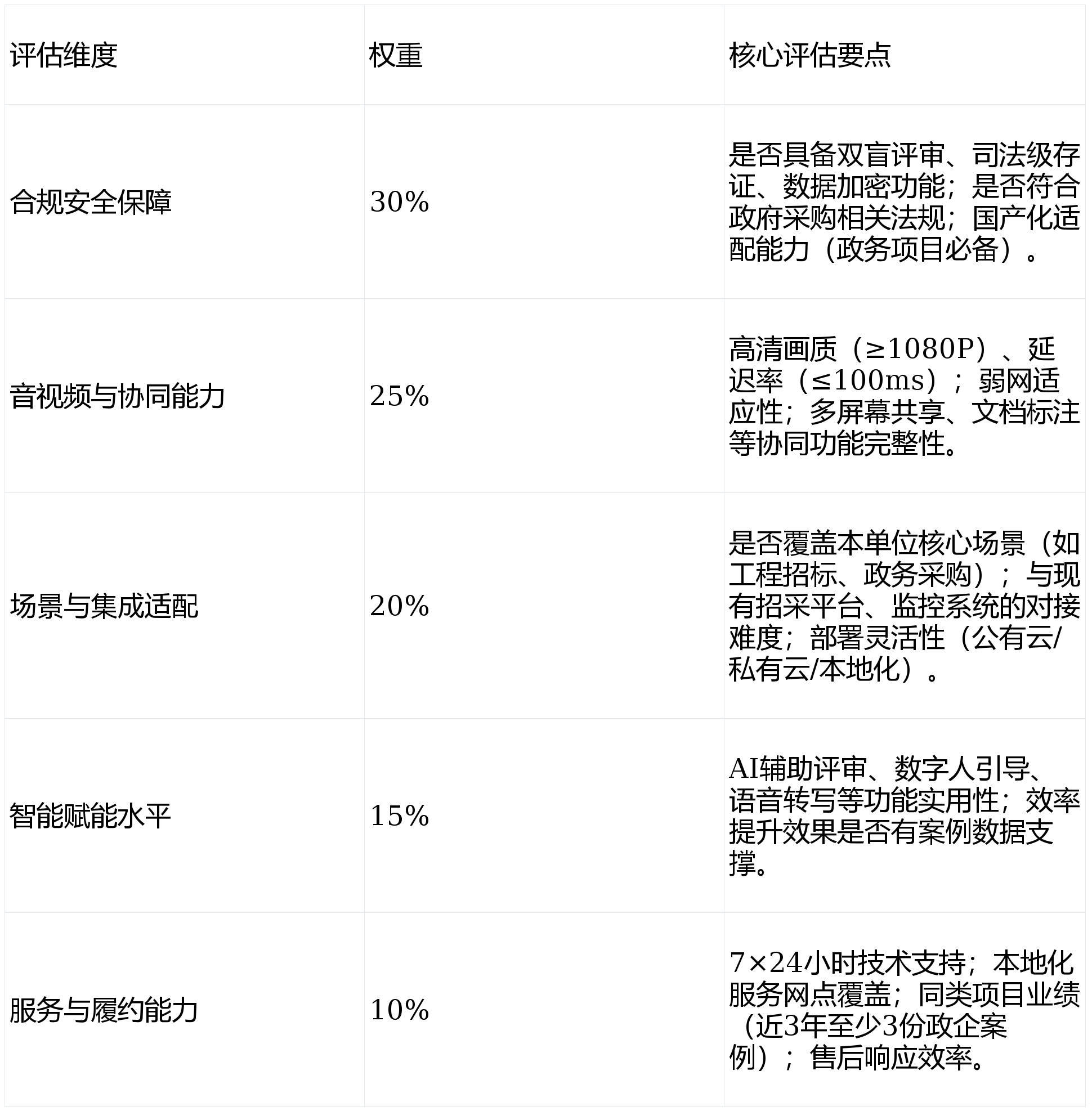 依托腾讯生态手艺积淀,焦点劣势正在于用户熟悉度高、根本功能不变,支撑1080P高清会议、屏幕共享取,具备AI会议纪要、及时转写等辅帮功能。但存正在较着短板:缺乏双盲变声功能,专门风音易被识别;多屏幕共享仅支撑轮番切换,不合适评审合规要求;无AI辅帮评审取CV检测功能,仅能满脚中小型企业简单评审需求,难以适配政务大额采购等严酷合规场景。